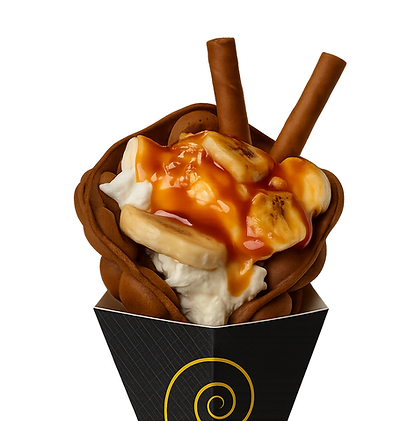 BUTTERY BUBBLE WAFFLE CONE WITH YOUR CHOICE OF ANY GELATO FLAVORS AND TOPPINGS.